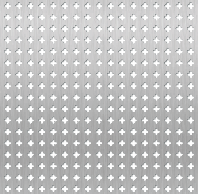 Chapa perforada de 1×2 metros – Diseño Trébol Mediano, espesor 0.9 mm, 35% de área libre. Combinación de ventilación y estilo ornamental para muros o cielorrasos.